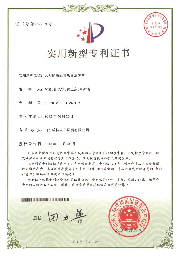 部分实用新型专利证书: