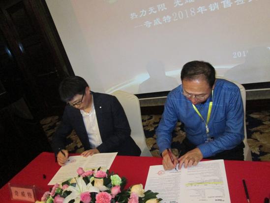下午,“热力无限,光耀中国”奇威特2018年市场规划会议在凤冠酒店三楼瑞麟厅举行,会上,奇威特董事长李文就奇威特集团2017年的工作做了总结,并详细介绍了奇威特集团2018年的规划,其中最引人注目的是奇威特生产能力改造,面对着巨大的市场增长情况,奇威特集团对现有生产线进行了详细规划,并通过引进新设备、改变新工艺等手段,力争2018年生产能力在上一个新台阶。在下午的会议上,销售总代理也就市场开发进行了详细的沟通。值得关注的是,在会议的尾声,有9家客户当场进行了销售合同的签订,签订数量达到奇威特2017年全年产量的2倍。面对此种情况,董事长李文表示,奇威特已经做好准备,保证2018供货数量充足、产品质量稳定,为奇威特和地区总代理的发展打下坚实的基础。